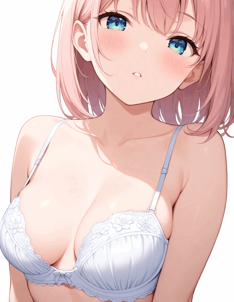 1girl, solo, half-cup bra, upper body, white background, ※ half-cup の記述で効く場合もあります。